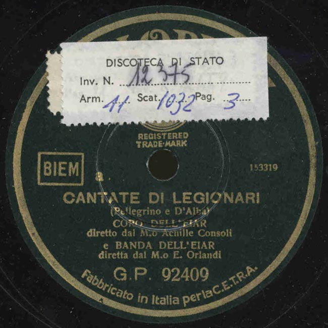 Performer: Achille Consoli, E. Orlandi, EIAR : Banda, EIAR : Coro